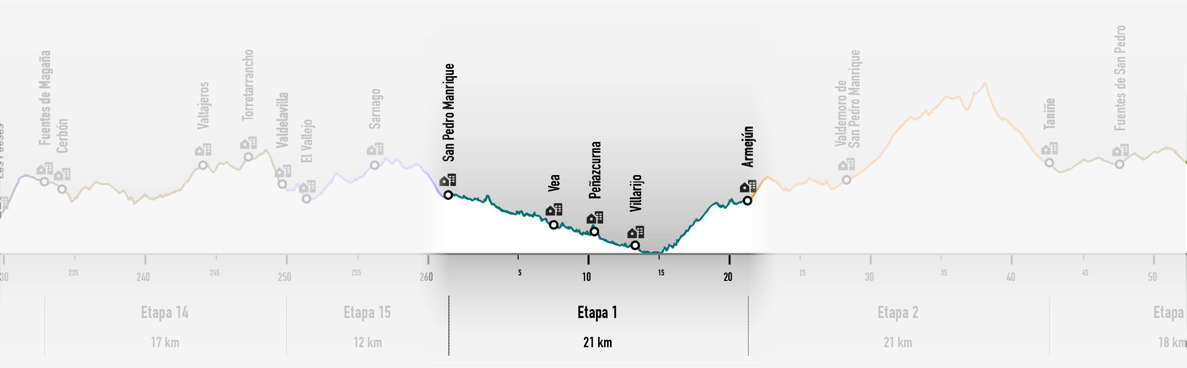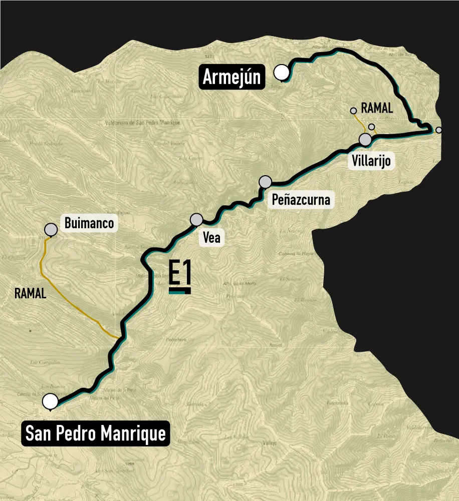 Zona de despoblados del río Linares, un angosto y abrupto barranco de piedra que transita por Vea, Peñazcurna y Villarijo antes de subir y alcanzar Armejún. Previamente se deja atrás el cruce del ramal a Buimanco. Puentes de piedra seca, caminos sujetos en las laderas con muros de piedra y varios restos de molinos harineros serán los compañeros de ruta. En Villarijo se puede optar por adentrarse en los ramales del Canal y Acueducto del Olivar de Villarijo, o el Trujal y Fuente Medicinal de Villarijo y visitar, en este último, las ruinas de un trujal que operaba en esta demarcación y que era el único de la provincia.