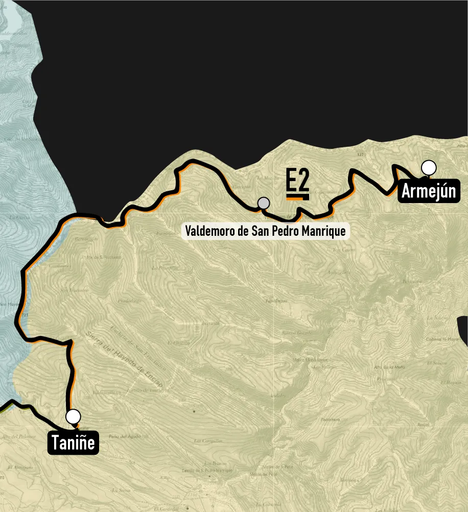 Zona de despoblados del río Linares, un angosto y abrupto barranco de piedra que transita por Vea, Peñazcurna y Villarijo antes de subir y alcanzar Armejún. Previamente se deja atrás el cruce del ramal a Buimanco. Puentes de piedra seca, caminos sujetos en las laderas con muros de piedra y varios restos de molinos harineros serán los compañeros de ruta. En Villarijo se puede optar por adentrarse en los ramales del Canal y Acueducto del Olivar de Villarijo, o el Trujal y Fuente Medicinal de Villarijo y visitar, en este último, las ruinas de un trujal que operaba en esta demarcación y que era el único de la provincia.