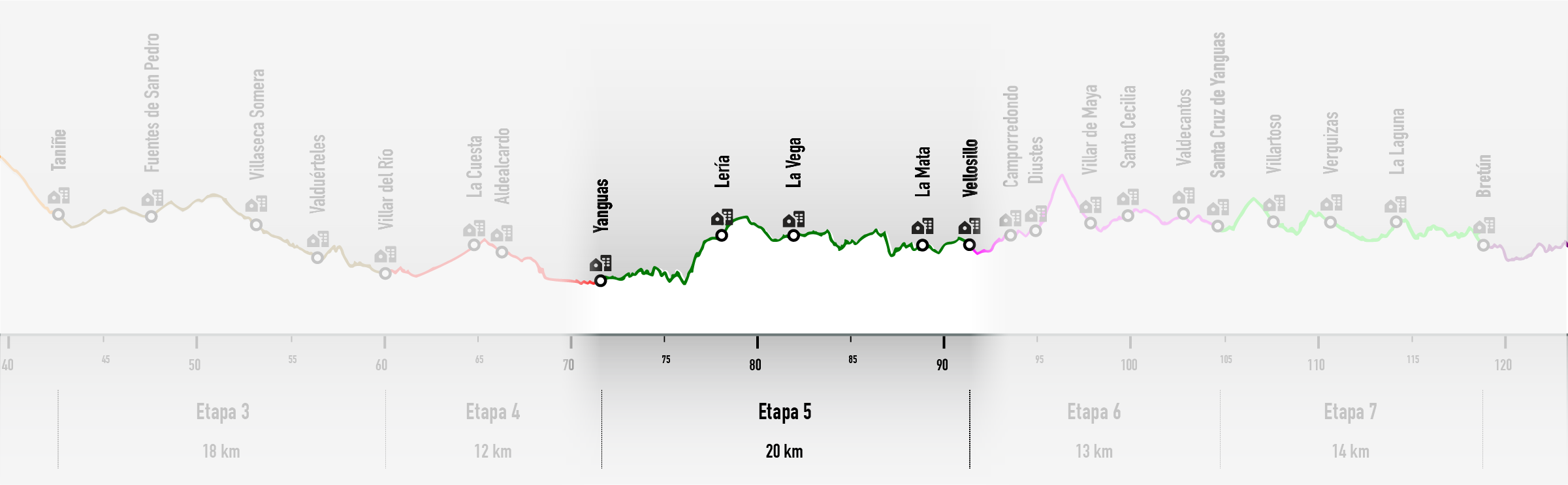 Recorrido que transita casi al completo por los Caminos Arrieros de Yanguas. Primero por la Torre de San Miguel, y luego por los caminos tradicionales de Lería y La Vega. Se adentra en Valdecastillo y desciende por la presa del siempre valiente río Masas, visita el despoblado de La Mata antes de alcanzar el destino final, el también despoblado, Vellosillo.
