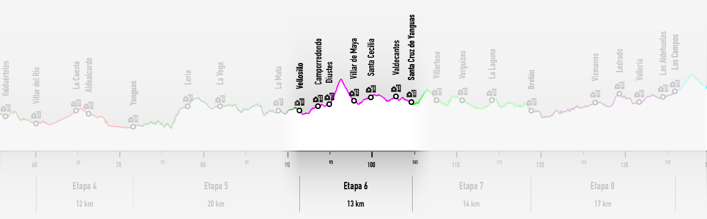 Empieza coincidente con el GR86, visitando Camporredondo y Diustes y su hayedo. Se separan en el collado de la Cerrezuela y el Gran Sendero baja por camino viejo a Villar de Maya y Santa Cecilia. Transita por Valdecantos y algún tramo de Cañada antes de alcanzar Santa Cruz de Yanguas.
