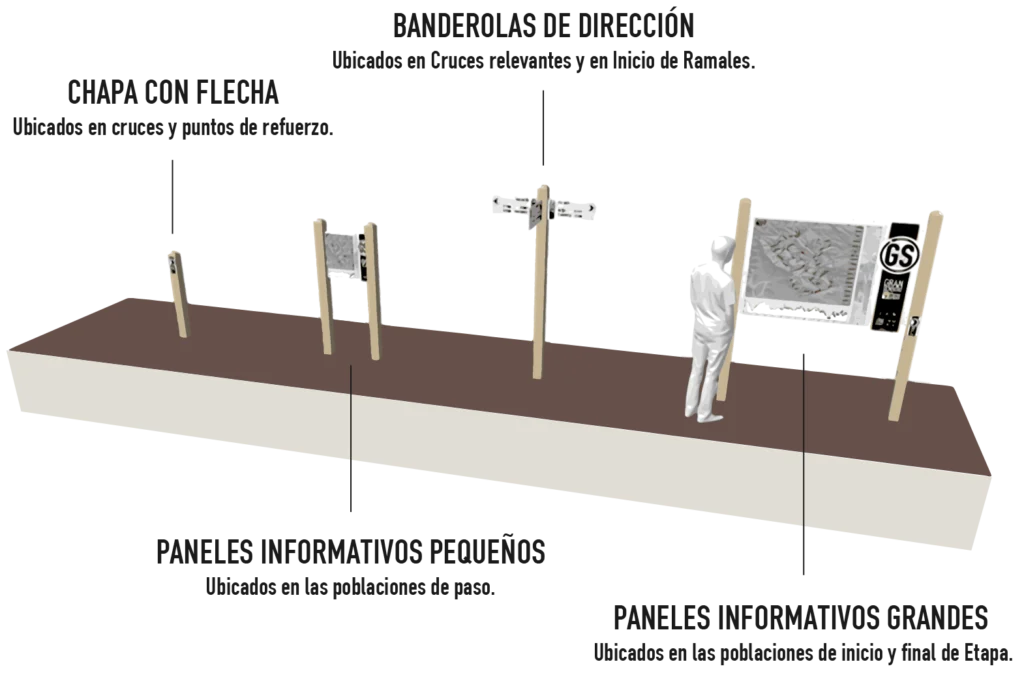 El Equipamiento para informar y guiar a los usuarios del sendero se compone de: